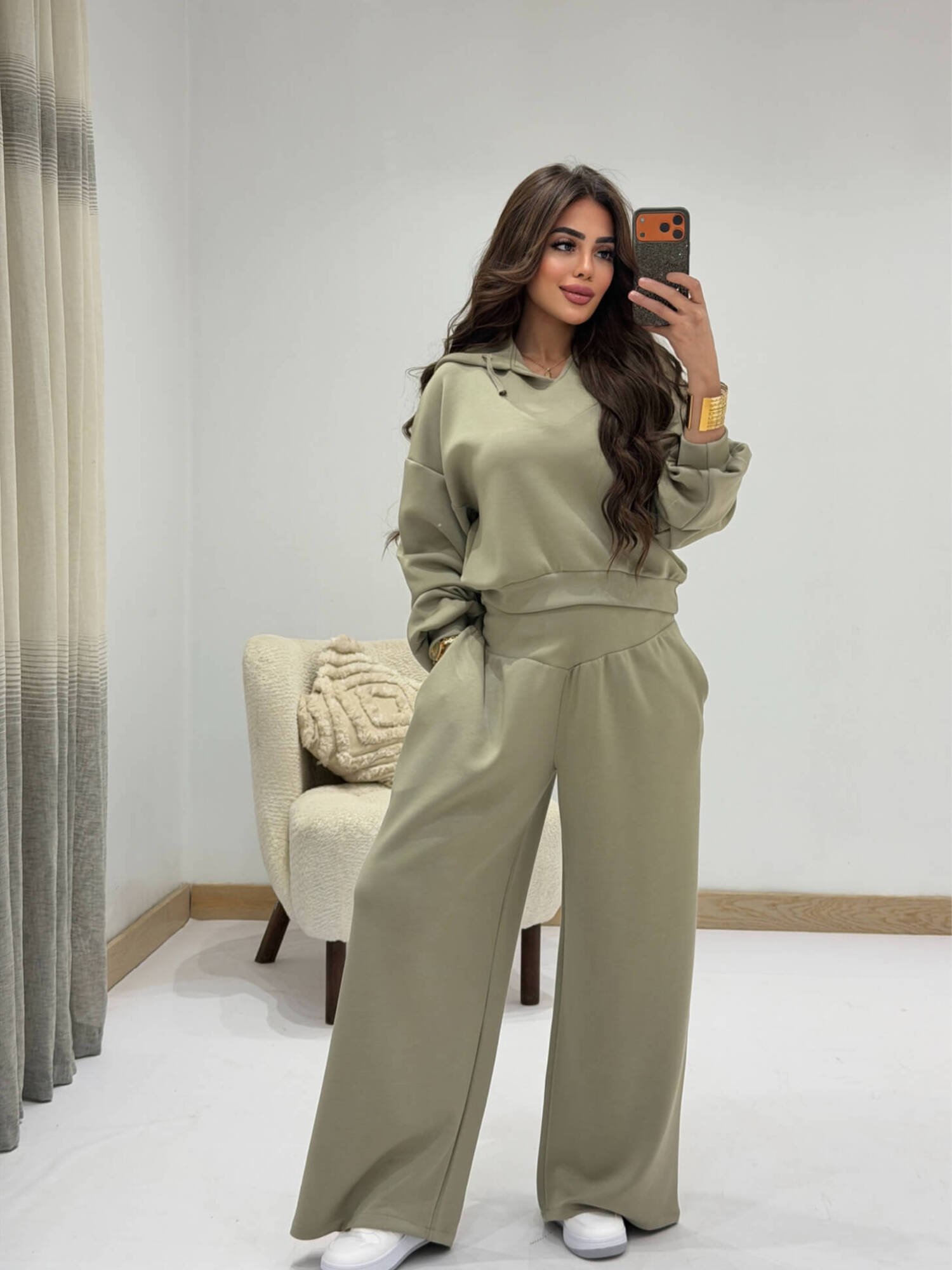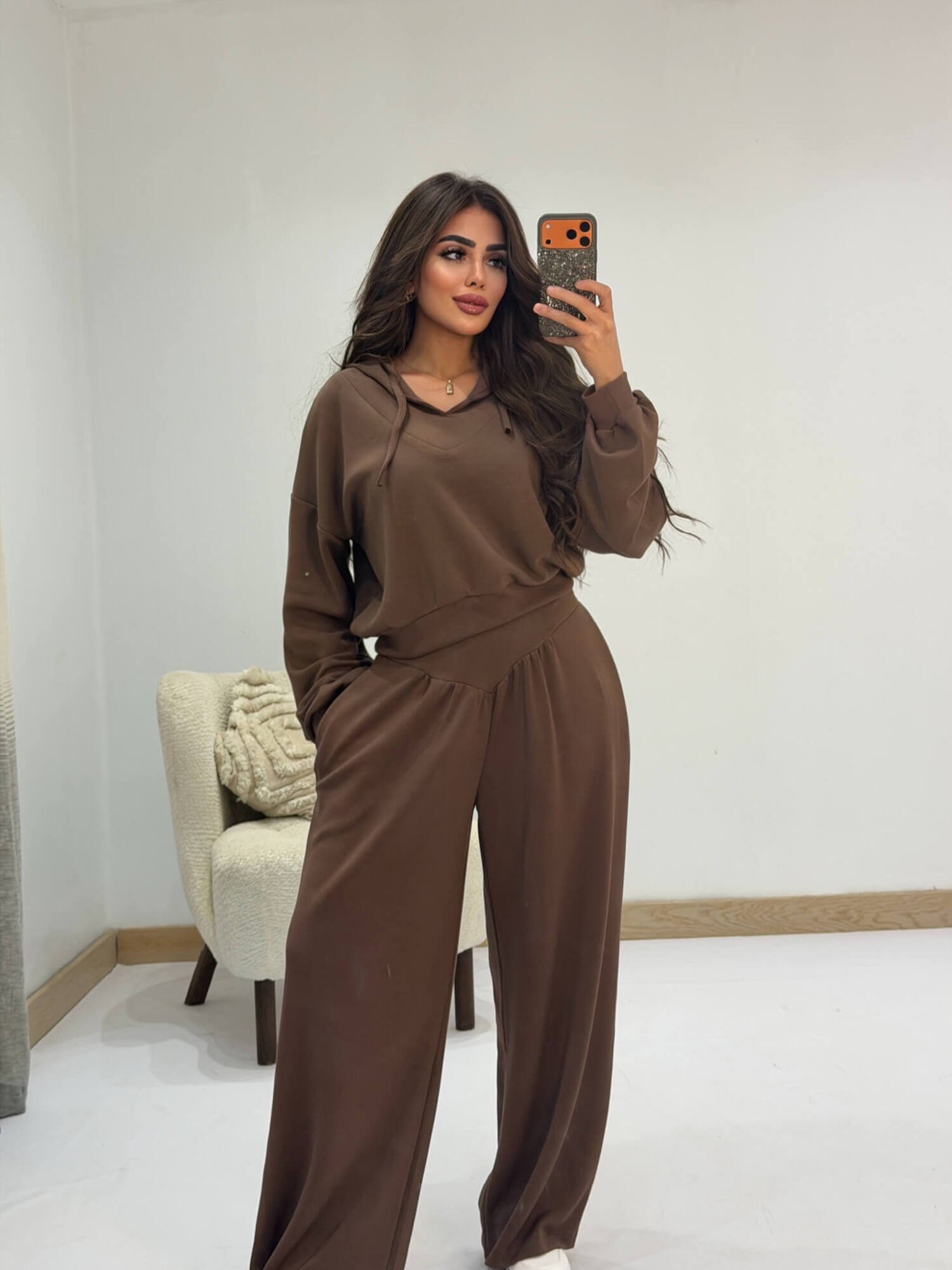 سوت أوشيو مريح بتصميم عصري يجمع بين الأناقة والراحة اليومية. يتكون من هودي بقصّة واسعة مع أكمام طويلة، وبنطلون واسع بخصر مريح ينسدل بانسيابية ليمنحكِ إطلالة أنيقة وعملية في نفس الوقت. خامة ناعمة وخفيفة مناسبة للارتداء اليومي والخروجات الكاجوال، مع تصميم بسيط يسهل تنسيقه مع مختلف الإطلالات.