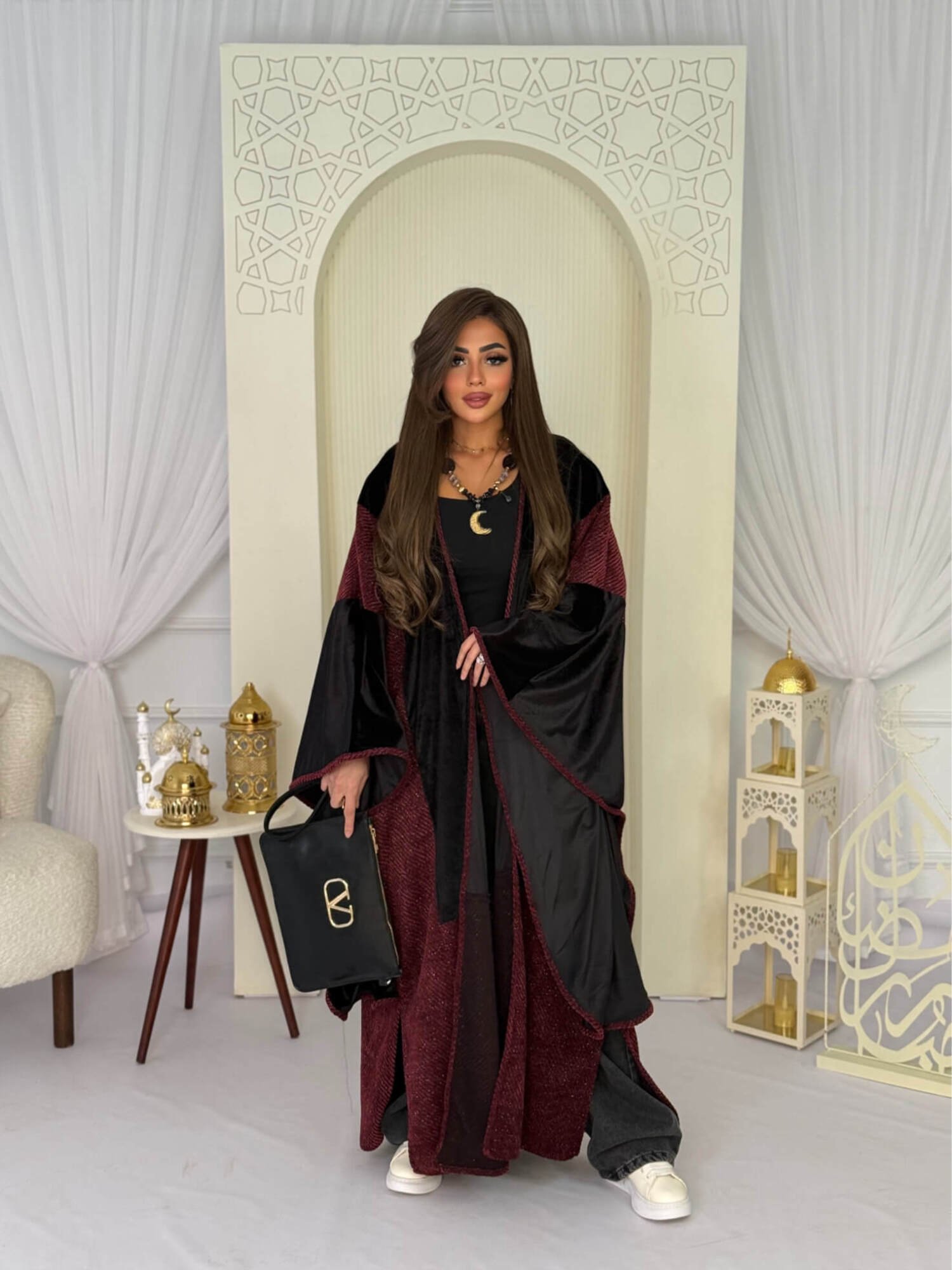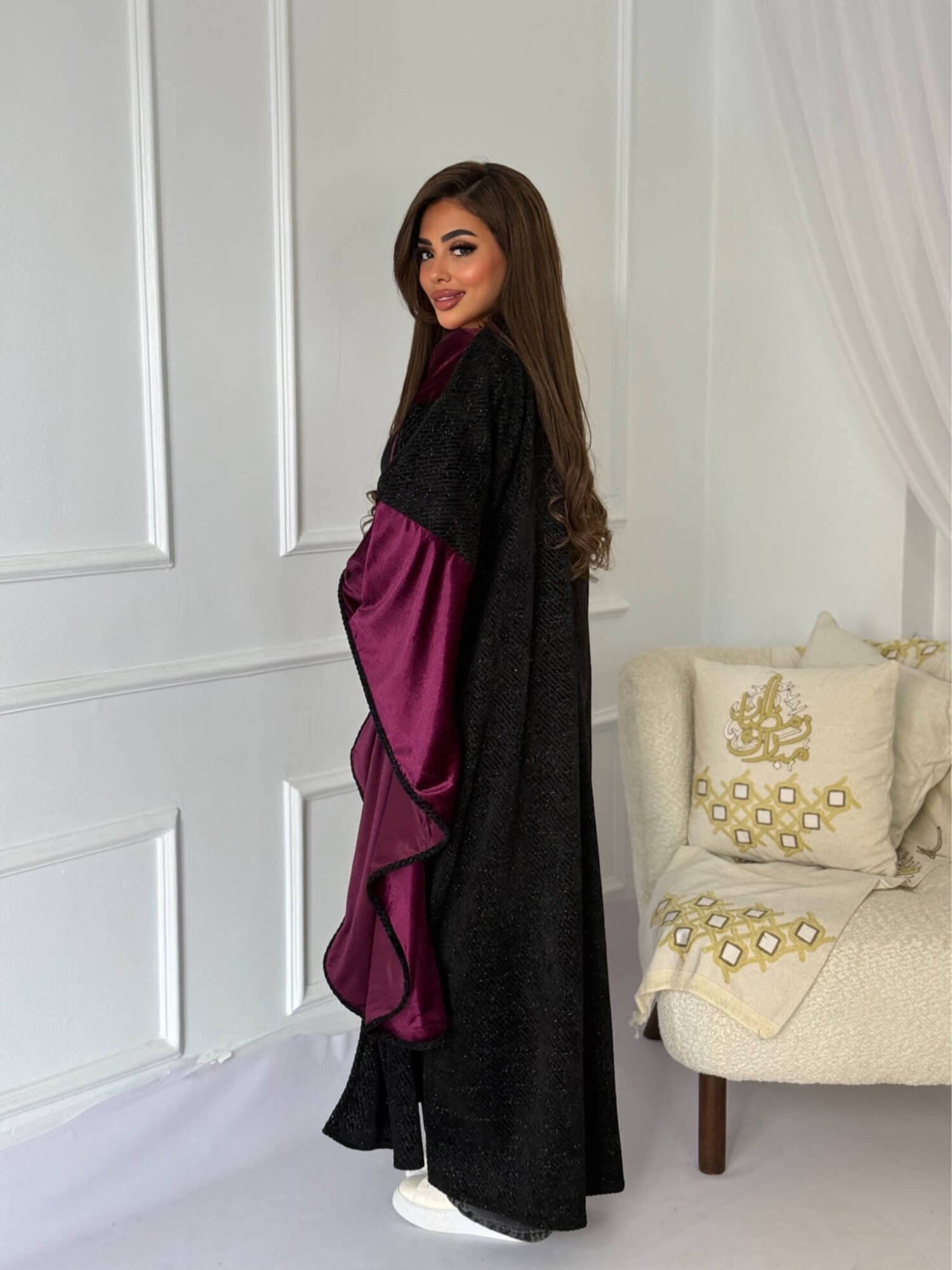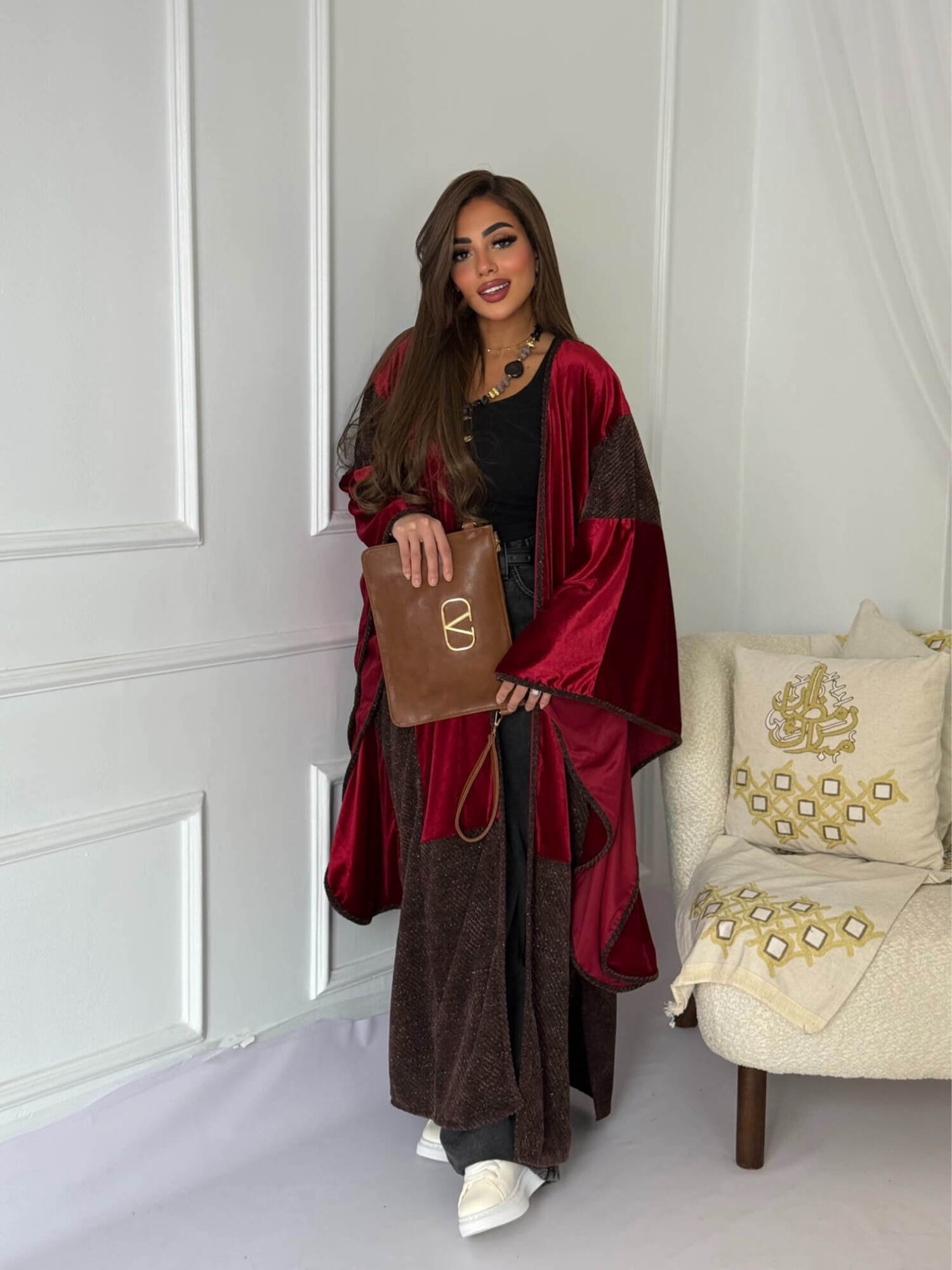 قفطان بتصميم جريء وعصري يجمع بين الطابع الشرقي واللمسة العصرية. يتميز بقصة واسعة وأكمام منسدلة تمنح حرية حركة وأناقة لافتة، مع تفاصيل ناعمة تضيف عمقًا وفخامة للتصميم. قطعة مثالية لإطلالة رمضانية مميزة أو مناسبات خاصة تبحث فيها عن التفرّد والتميز.