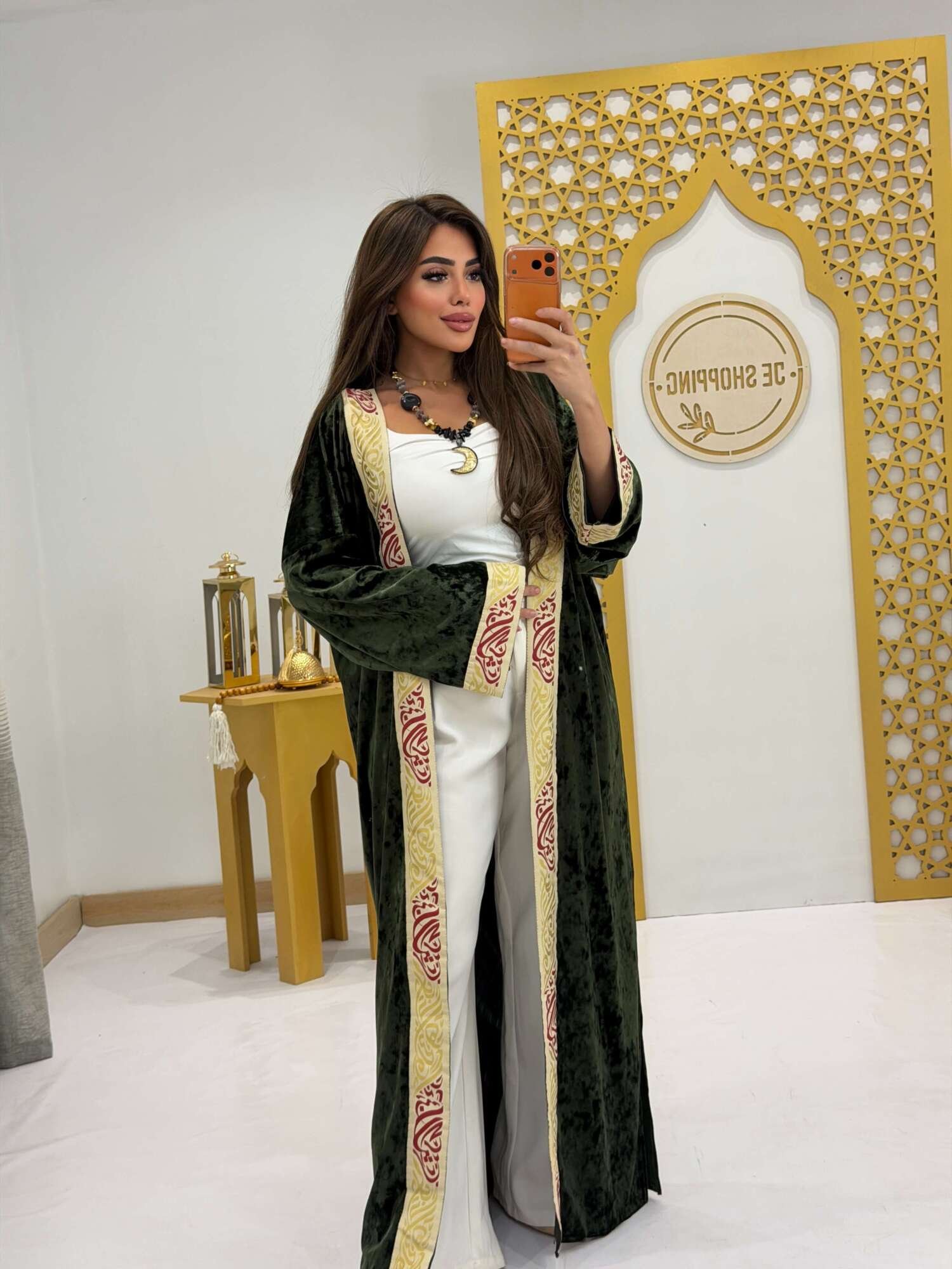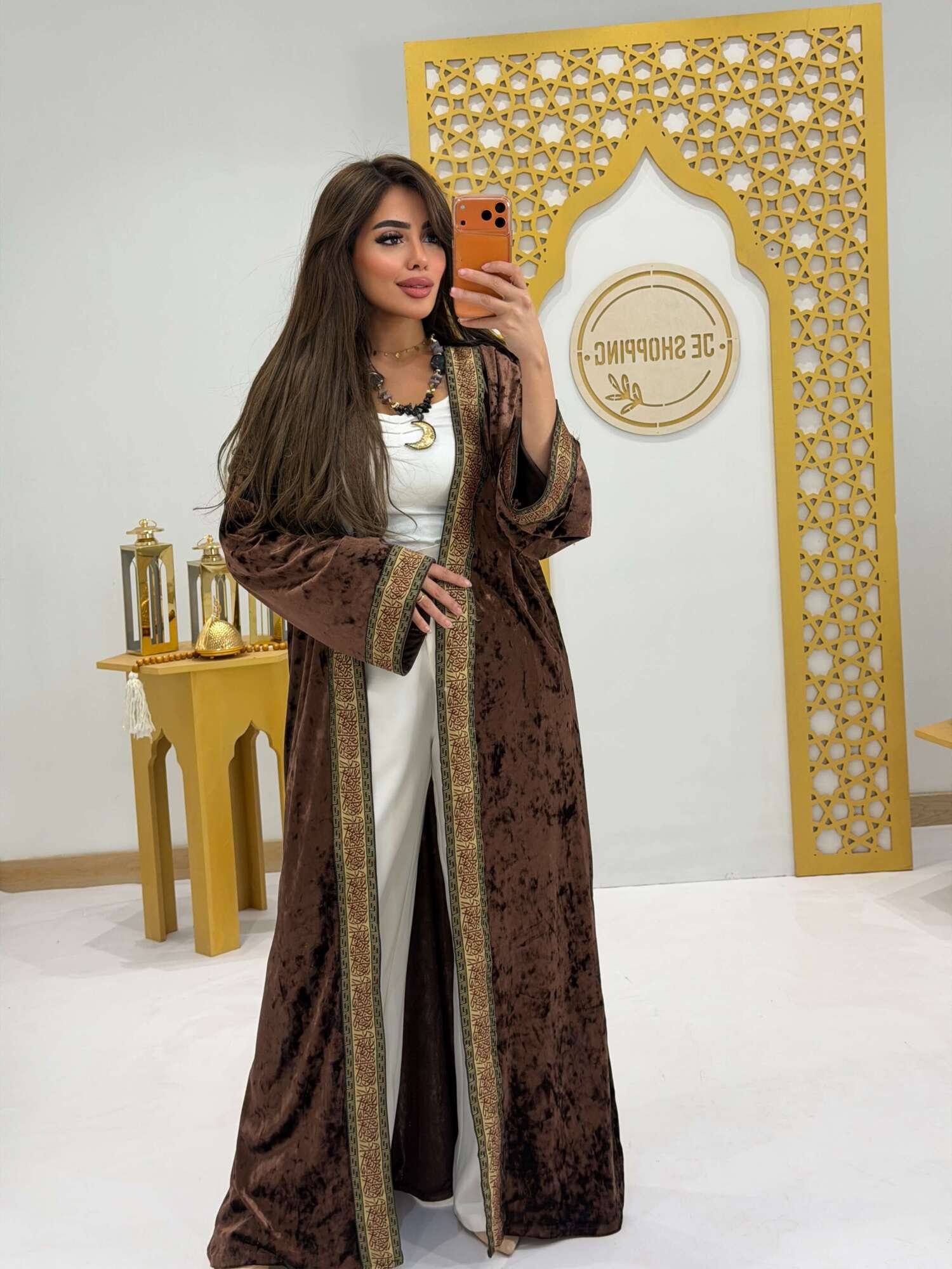 قفطان بتصميم أنيق يعكس فخامة الطابع الشرقي بلمسة عصرية. يتميز بتطريز بارز على الحواف يضيف عمقًا وأناقة للتصميم، مع قصة واسعة تمنح راحة وانسيابية في الحركة. قطعة مثالية لإطلالات رمضان والمناسبات الخاصة التي تجمع بين الرقي والتميّز.
