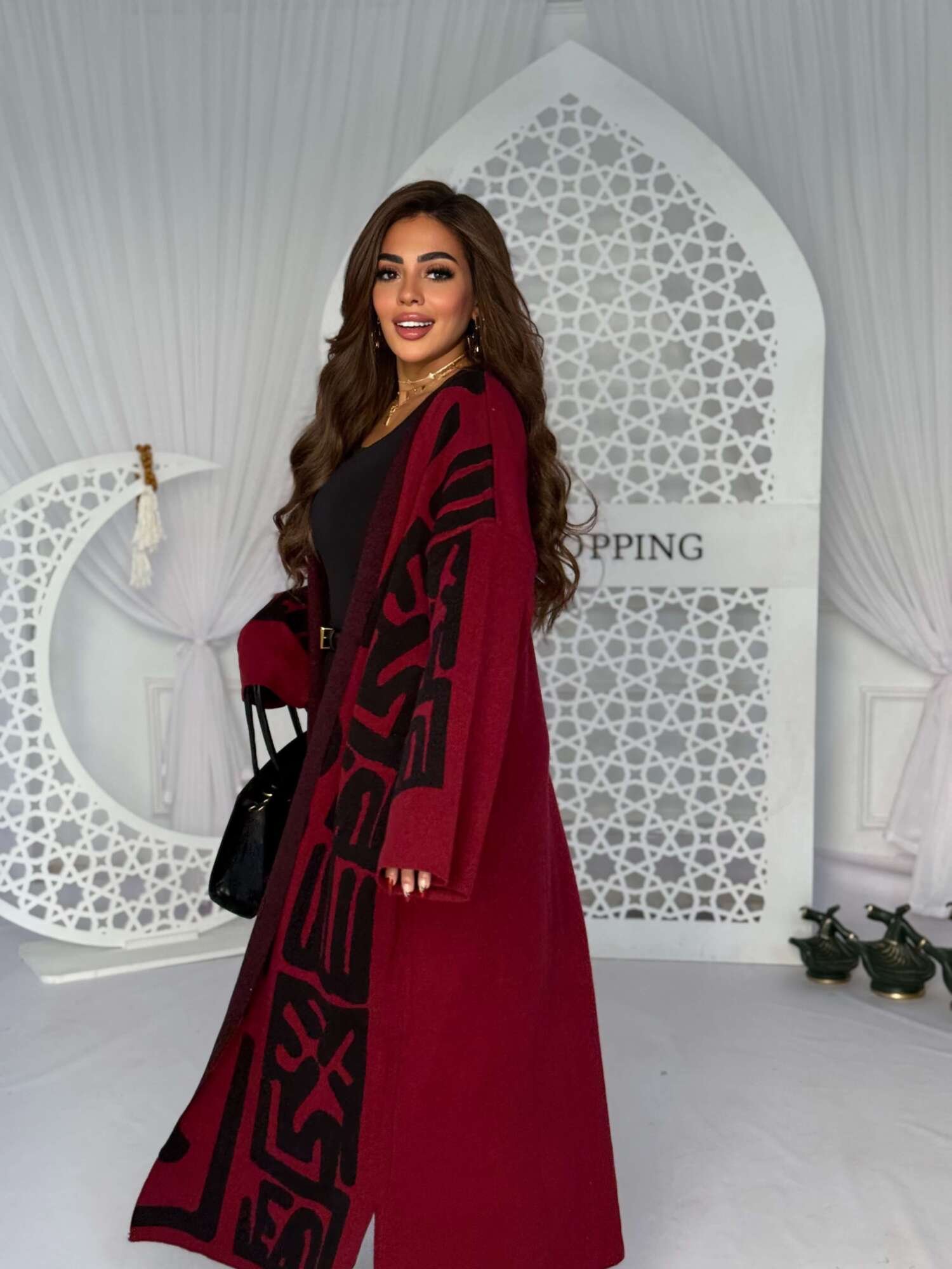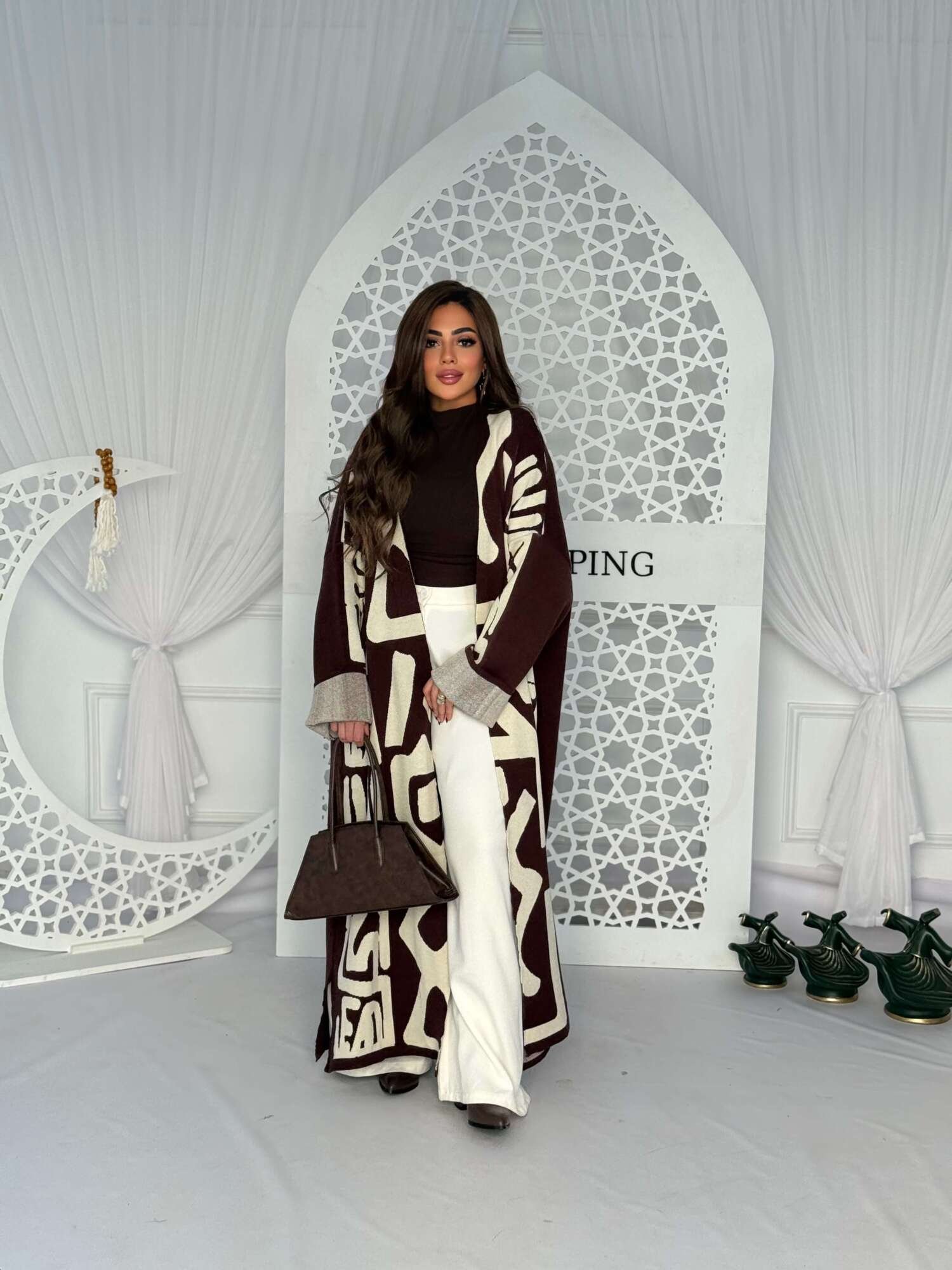 A long, elegant cardigan designed with a modern and bold touch. Featuring a straight, flowing silhouette that offers both comfort and sophistication, enhanced with statement patterns that add a distinctive and eye-catching look.