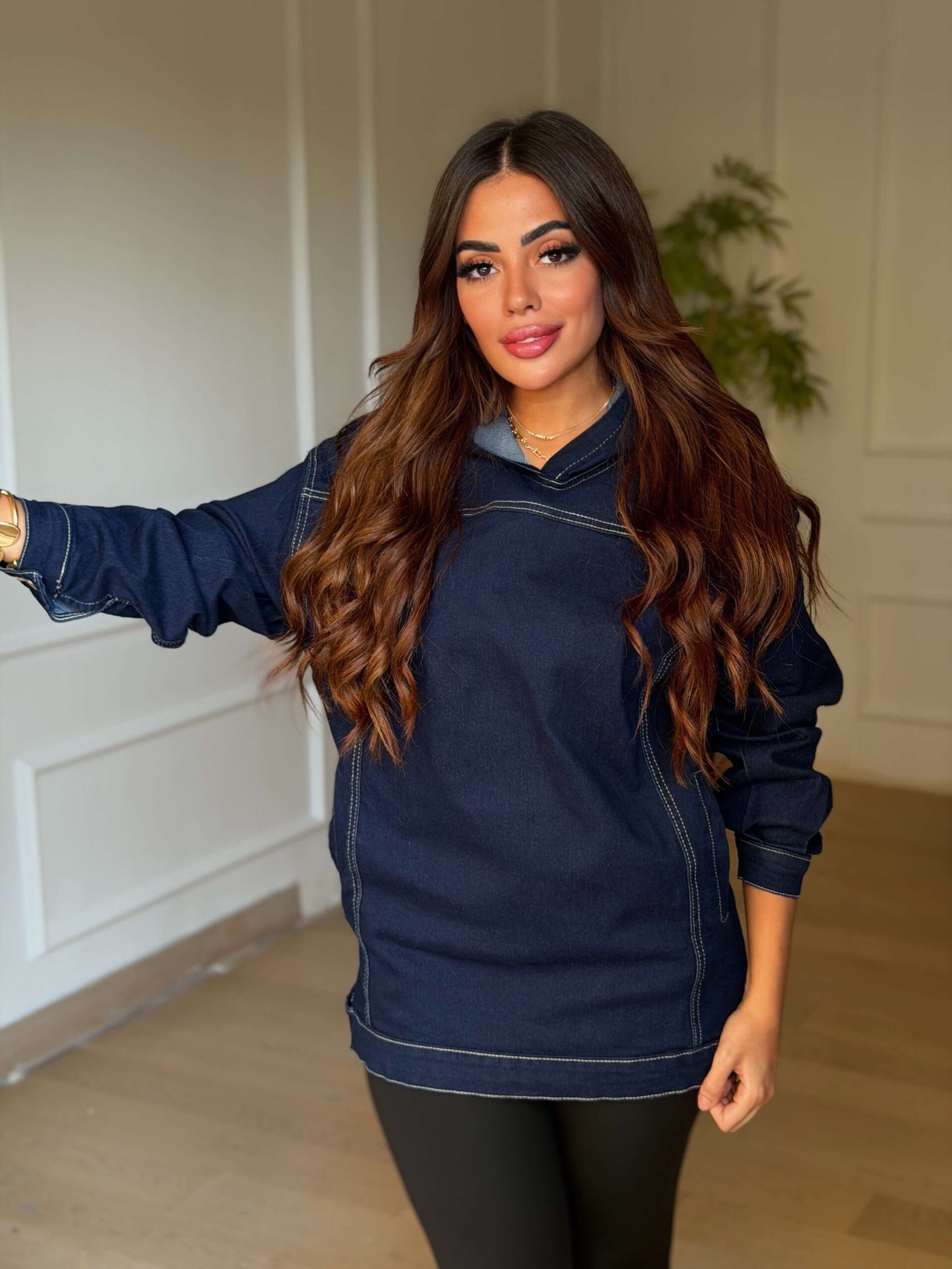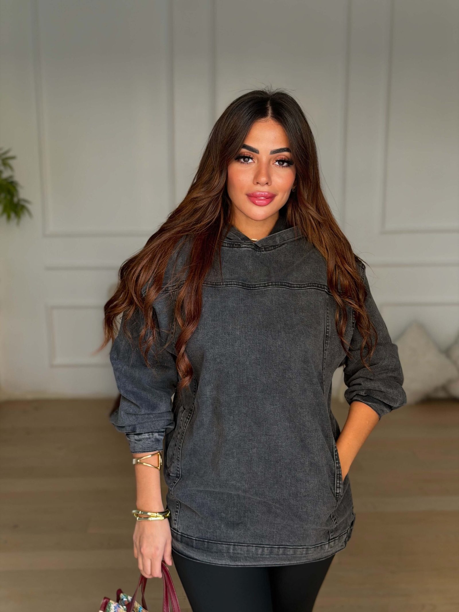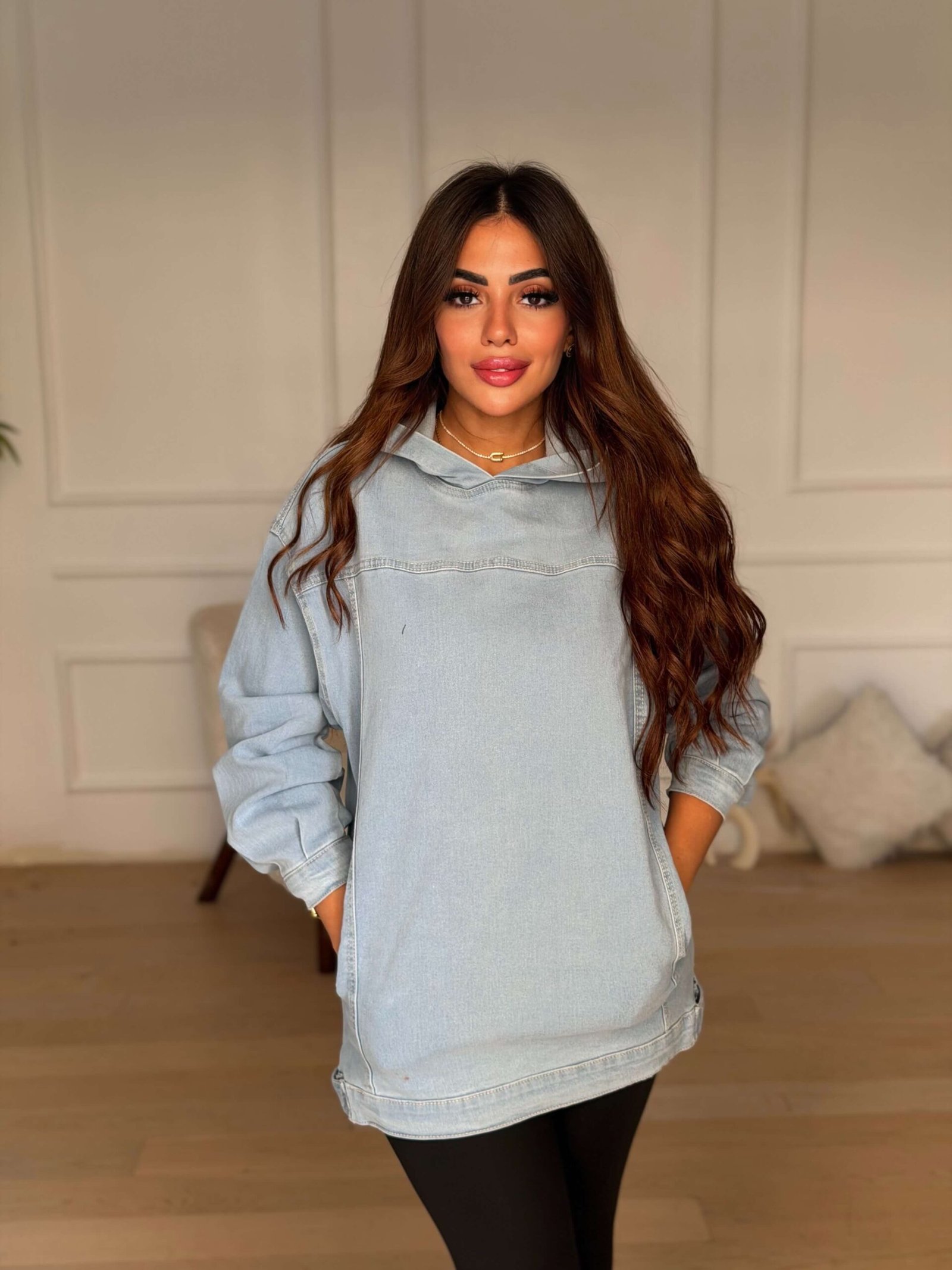 Enjoy a comfortable and stylish look with this denim sweatshirt designed to blend elegance and simplicity. Crafted from durable yet lightweight fabric for all-day comfort, featuring refined details that add a unique touch. Perfect for everyday wear or a chic casual outing.