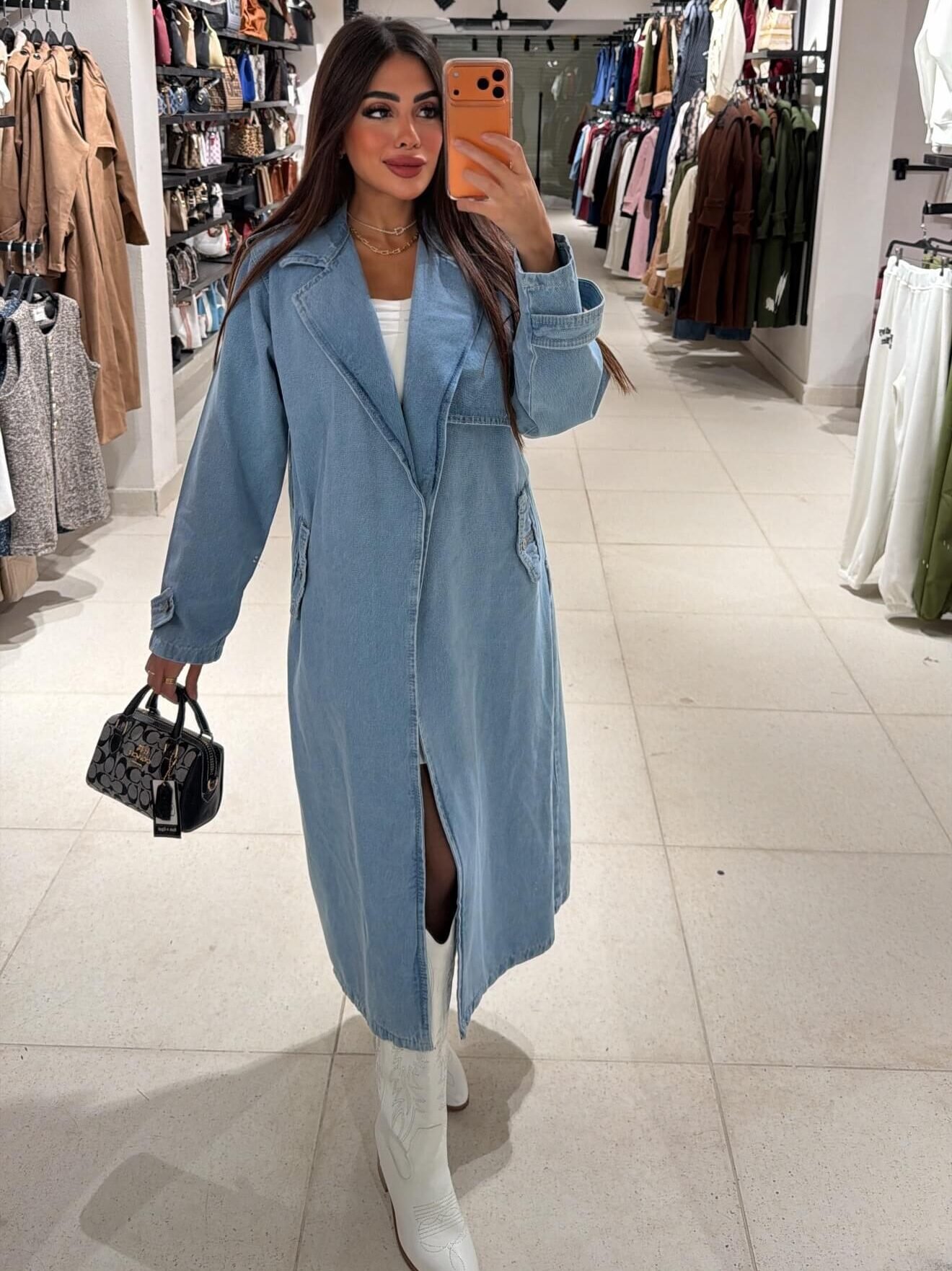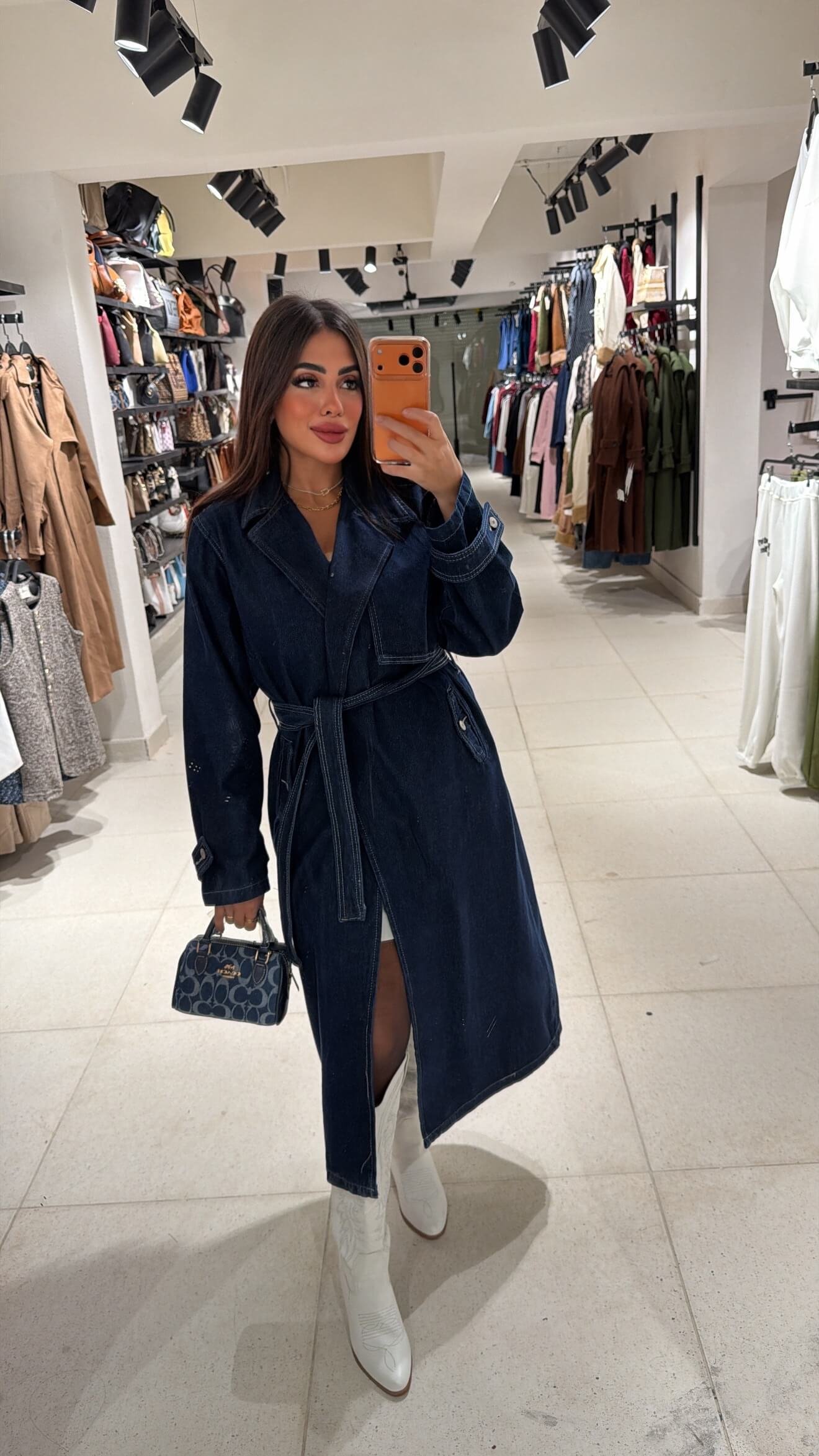 Step into effortless style with the * jeans Trench Coat*, a timeless piece that blends classic tailoring with a modern denim twist.