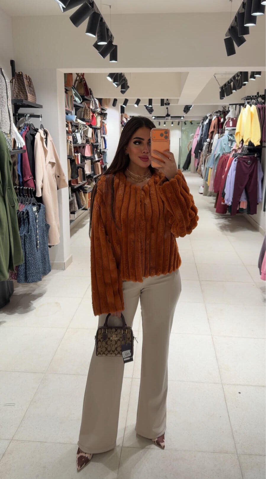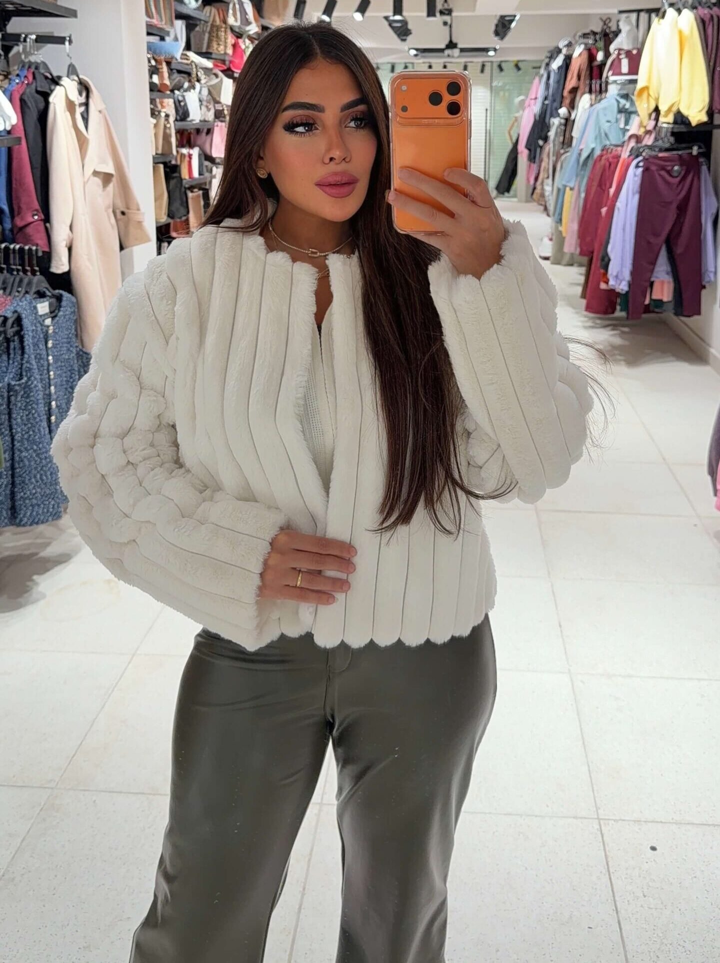 Crafted from ultra-soft faux fur, this luxurious jacket brings warmth and elegance to your winter wardrobe. Its unique textured design and relaxed fit make it perfect for both casual outings and chic evening looks. A timeless statement piece that blends comfort with refined style.