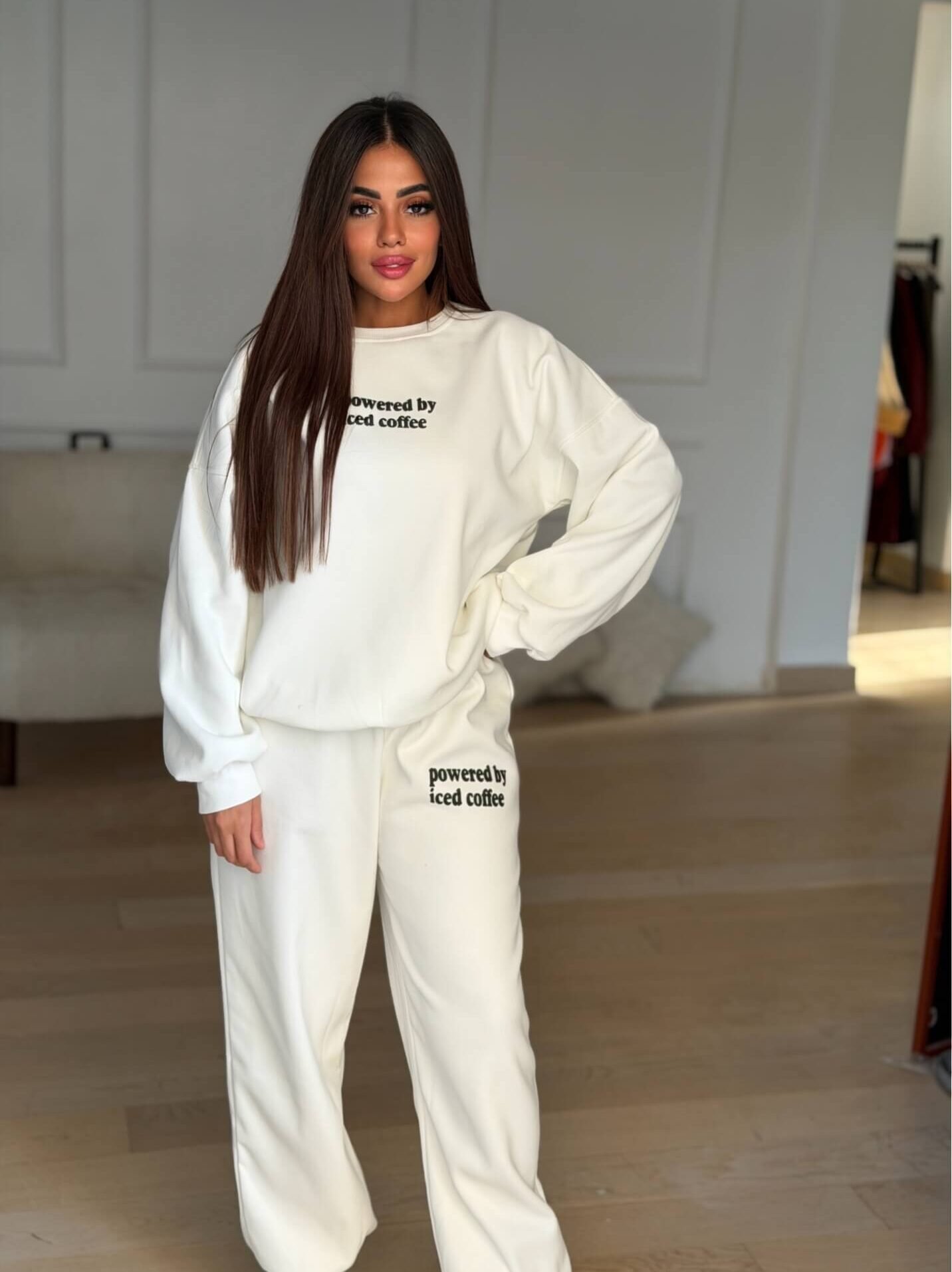 Stay effortlessly stylish and cozy with our *Milton Fabric Tracksuit – Iced Coffee Edition*. Crafted from premium Milton fabric, this two-piece set offers ultimate comfort and warmth while maintaining a chic, relaxed look. Featuring the trendy “Powered by Iced Coffee” print, it’s perfect for casual outings, lounging, or coffee runs. Pair it with your favorite sneakers and bag for a complete street-style vibe.