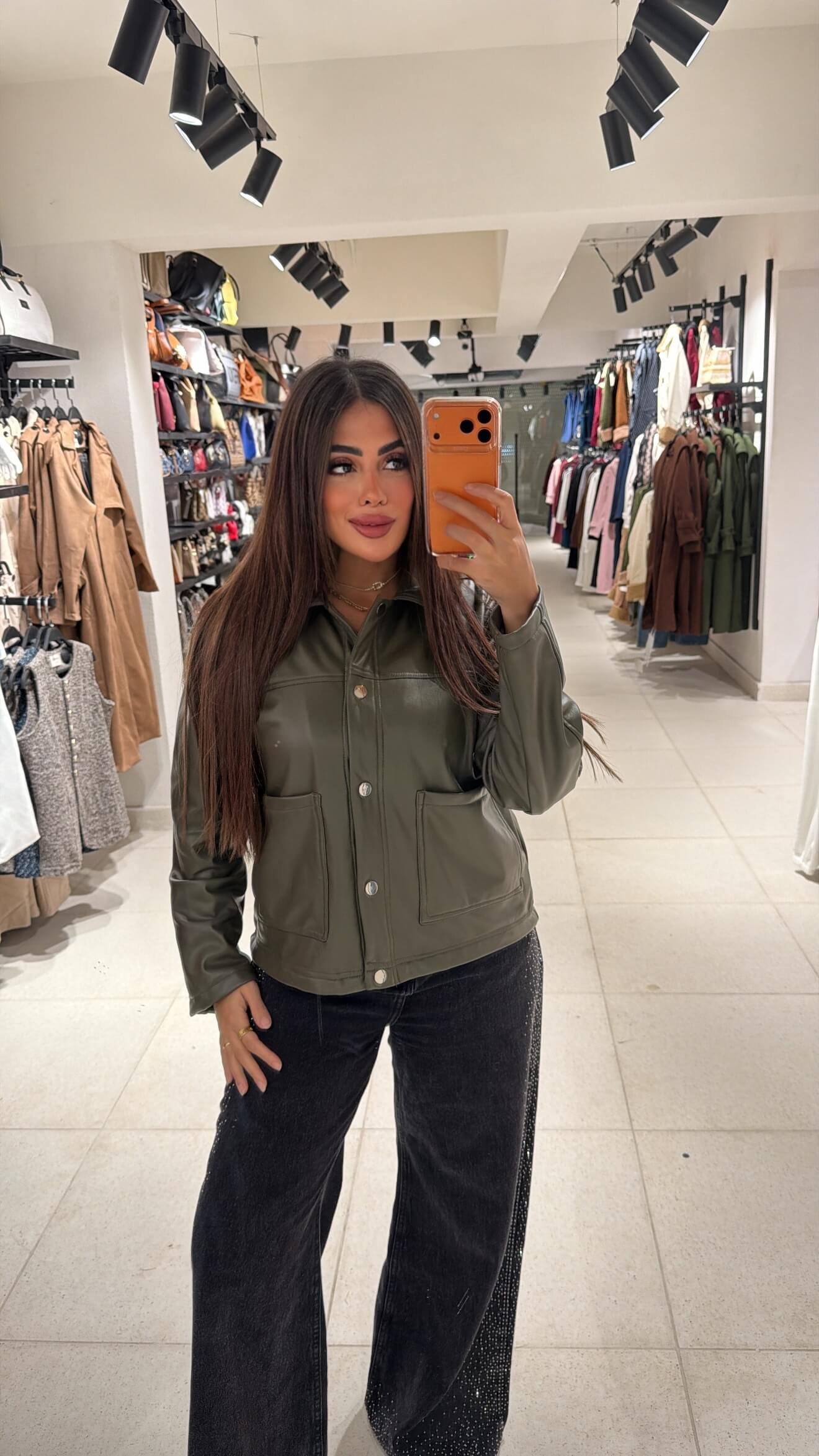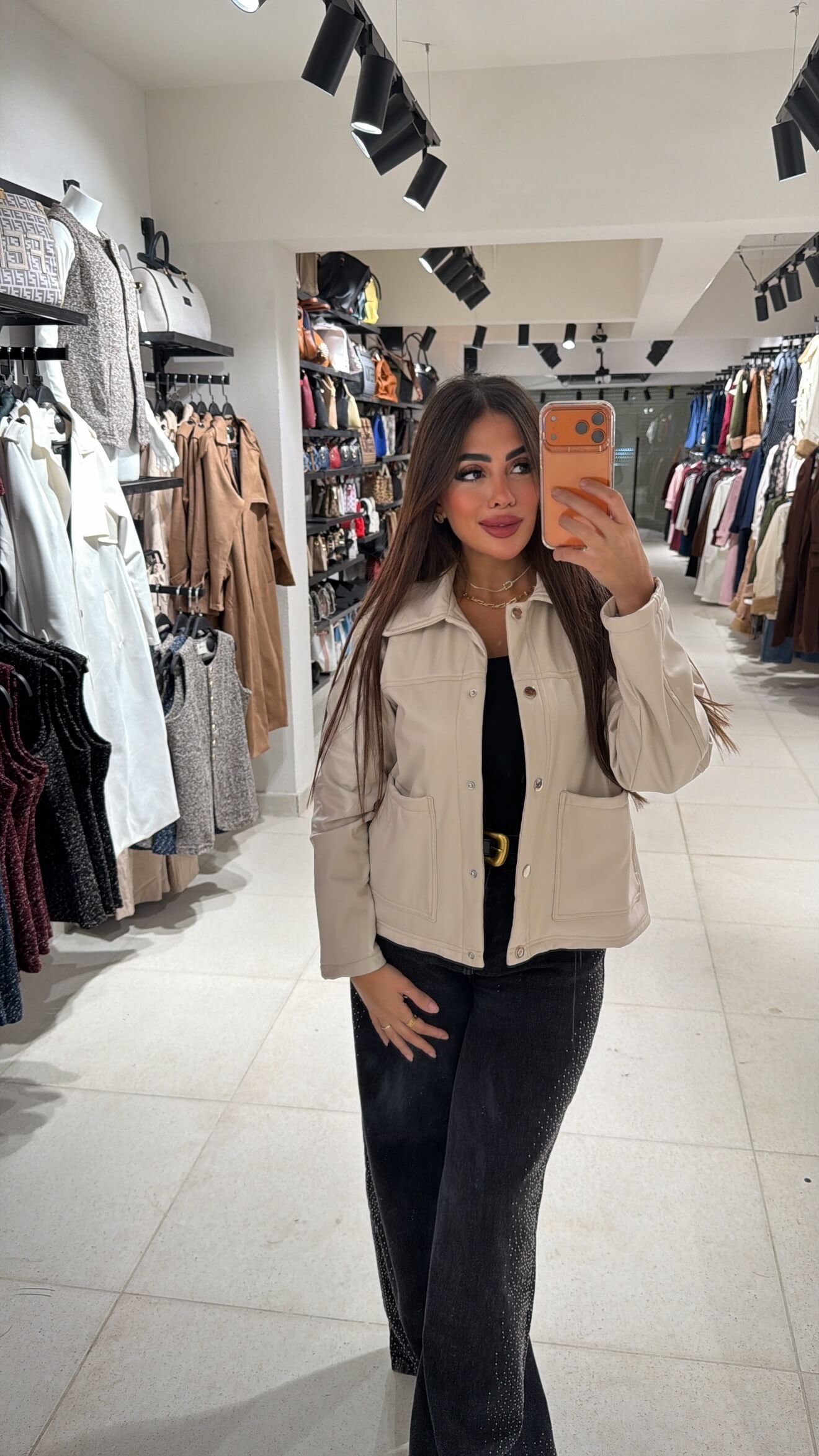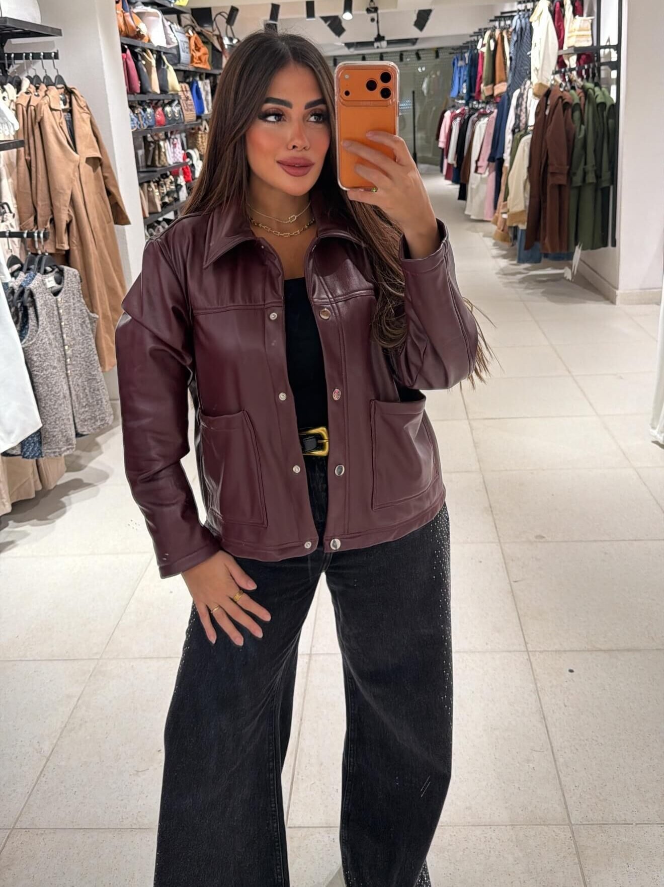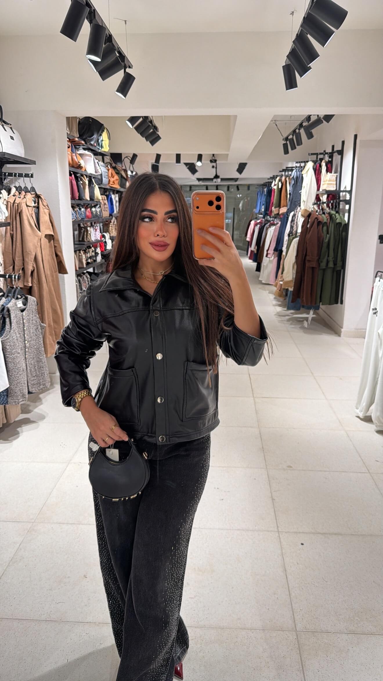 A stylish soft leather jacket featuring front buttons and practical side pockets. Designed for a modern, elegant look that’s perfect for cool seasons. Easily pairs with jeans or tailored pants for a chic everyday outfit. Made from smooth, comfortable material that’s easy to style.