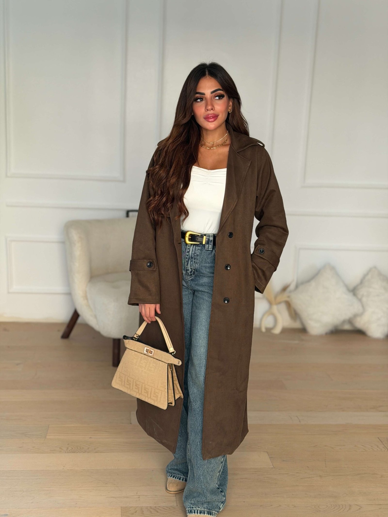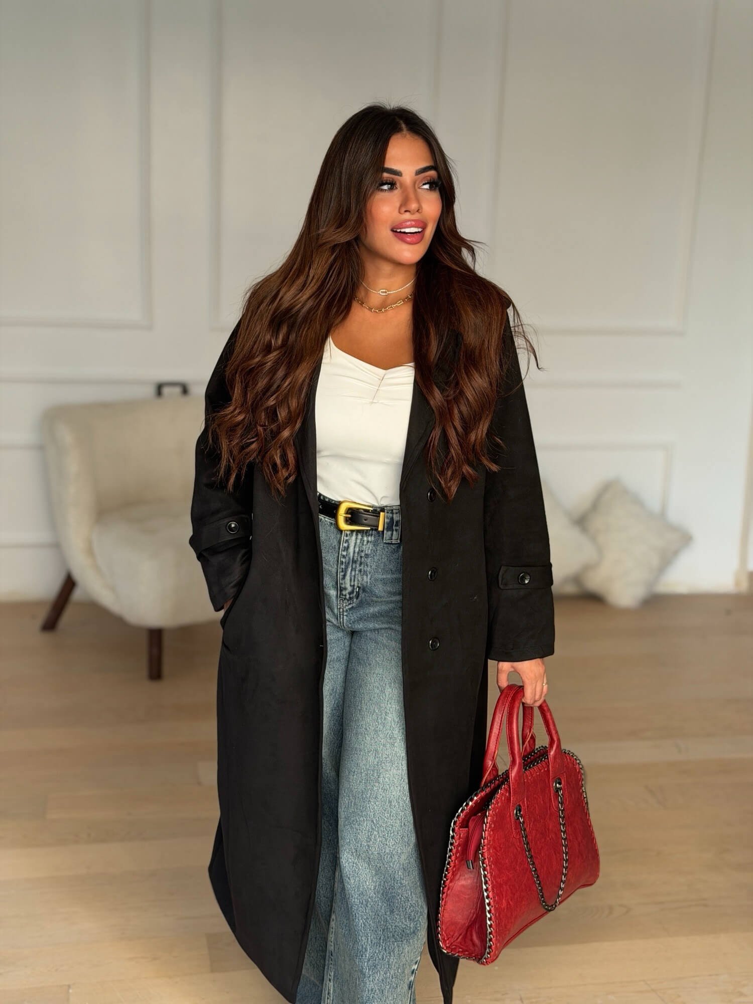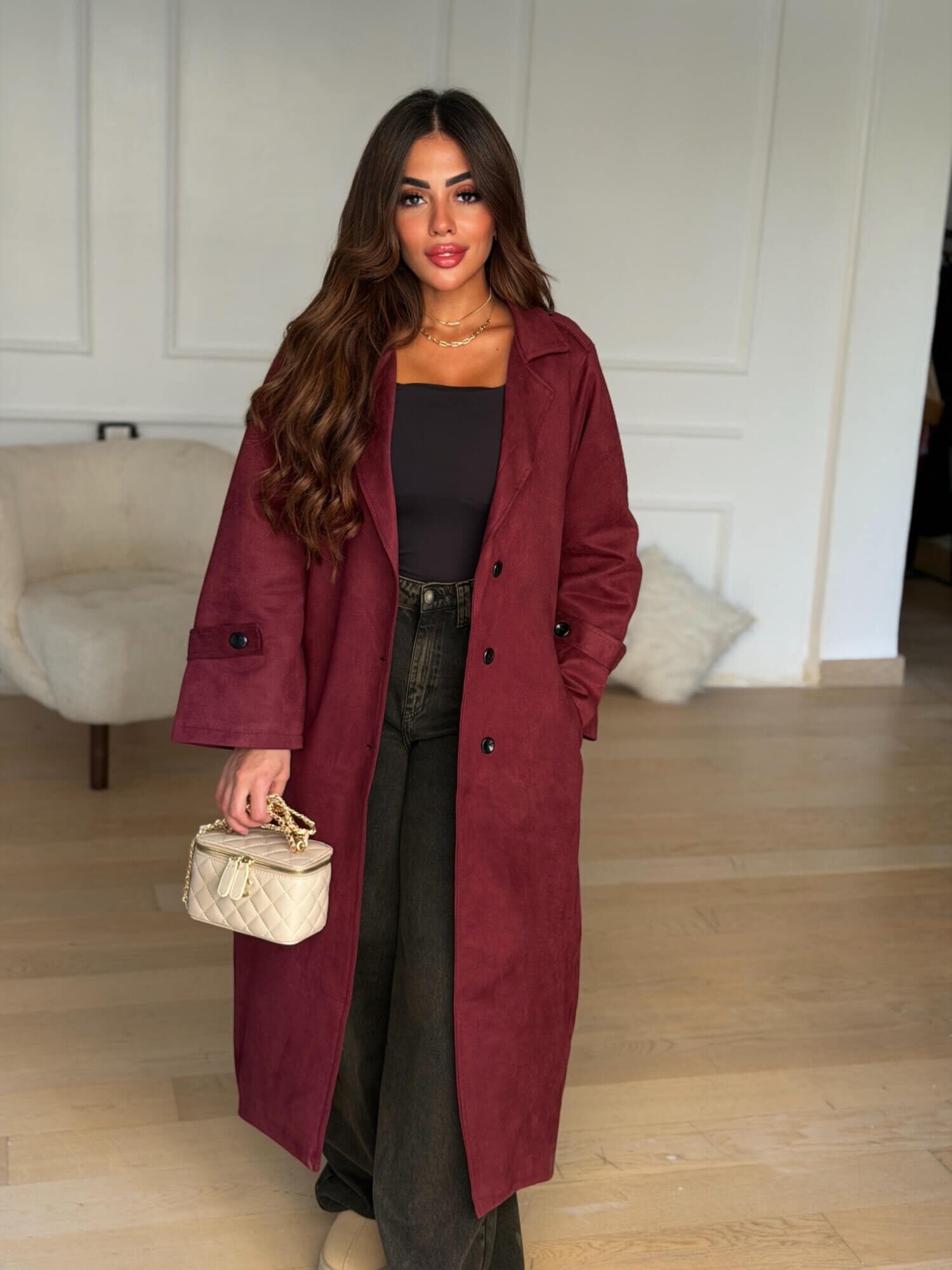 Step up your style with this premium suede trench coat, crafted with a smooth luxurious feel and a modern straight-cut silhouette. Designed for versatility — perfect for casual daytime looks or chic evening outfits. Features double-breasted buttons and refined sleeve details for an elevated finish. The neutral gray tone makes it a timeless wardrobe essential you can pair effortlessly.